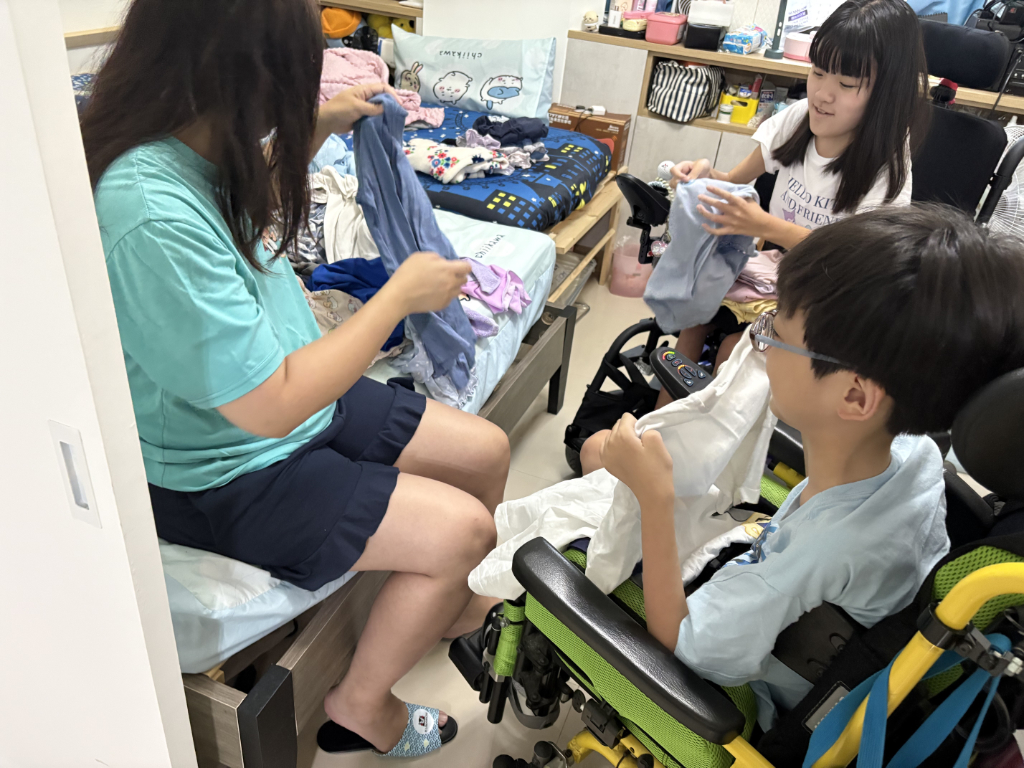 父母照顧她和同患SMA的哥哥,要花費比一般人更多的心力,工作、醫院與學校多頭奔波,回到家還要陪伴他們讀書、處裡家務事。奕霈小小年紀就體會到雙親的辛勞,於是盡己所能分擔家事,如摺衣服,對正常人輕而易舉,對她而言卻是疼痛的事情,但她忍著痛也要幫媽媽分勞解憂。奕霈念書,自動自發,努力勤學,成績總是保持前三名,讓父母感到欣慰與驕傲。