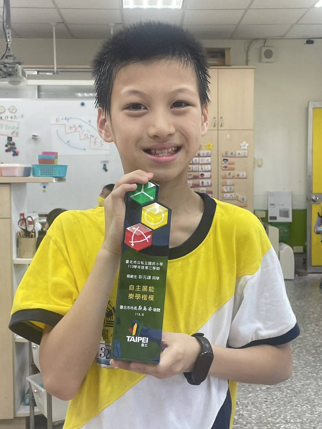 曾經有學習、表達上的困難,透過讀經可以清晰表達且孝順貼心,樂於助人與帶領同學讀經,勇於上台展現經典之美, 在班上還榮獲班級模範生的殊榮,令人讚賞。