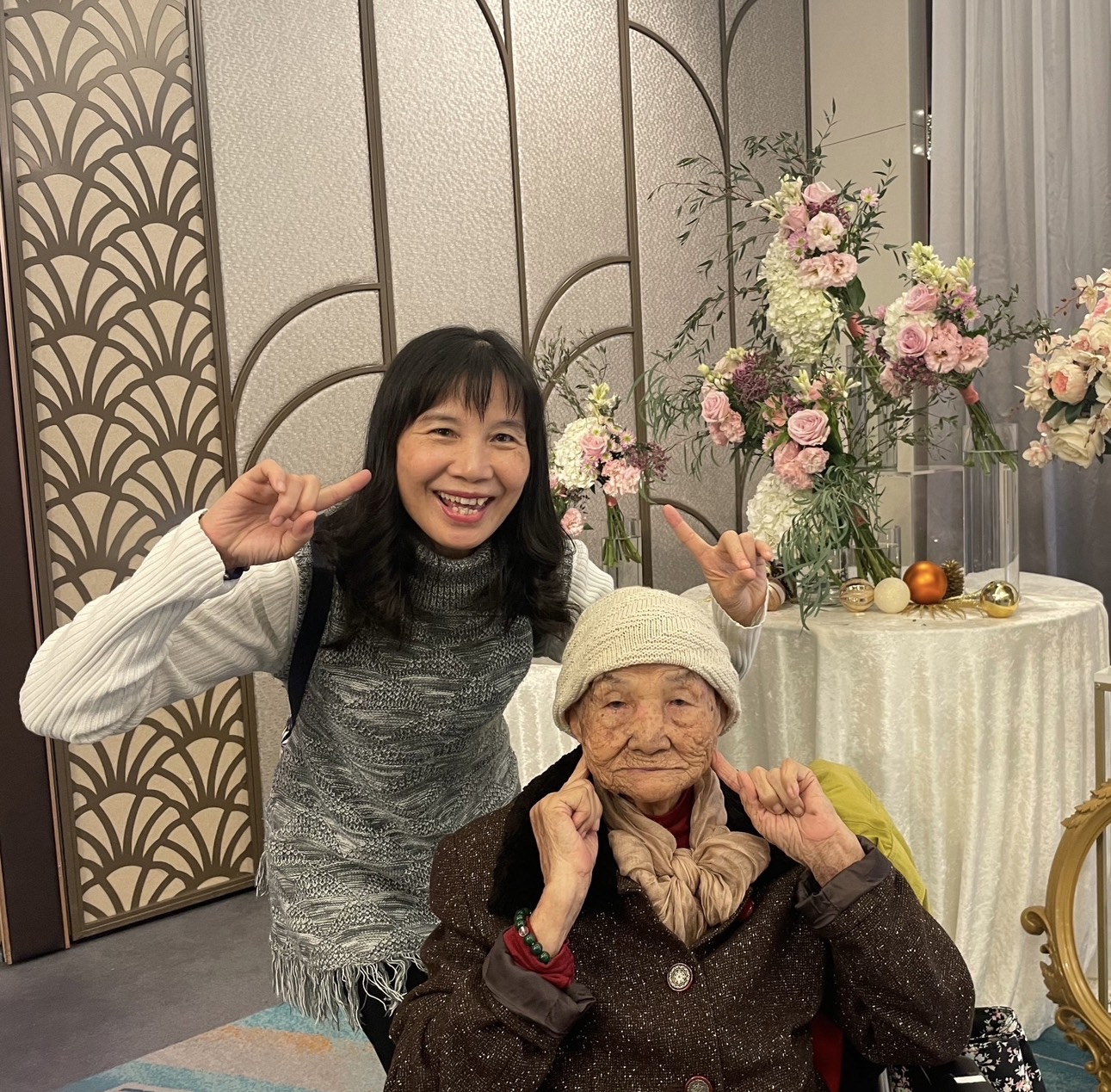 除了生活上的照護,為顧及母親的心情,宇綺會開車,載著母親及果汁機、奶瓶、躺椅、涼被…等等大大小小照顧母親時需要用到的資材出遊,或徜徉於山林間,或一同參加路跑,甚至參加過很fashion的復古Disco運動趴唷! 為了減緩母親失智的現象,她也鼓勵媽媽參加課程,還會自己拿紅包給照護員,請照護員拿給母親,藉此鼓勵母親接觸人群。宇綺每天會將母親近況及照片PO在家庭群組及Facebook。宇綺的孝行終於感動了原本不願意照顧母親的兄姊,會趁著空檔南下探望媽媽。 每晚臨睡前,宇綺總會溫柔地引導母親念佛,讓母親在祥和的念佛聲,及佛菩薩的陪伴中,安穩地進入夢鄉。