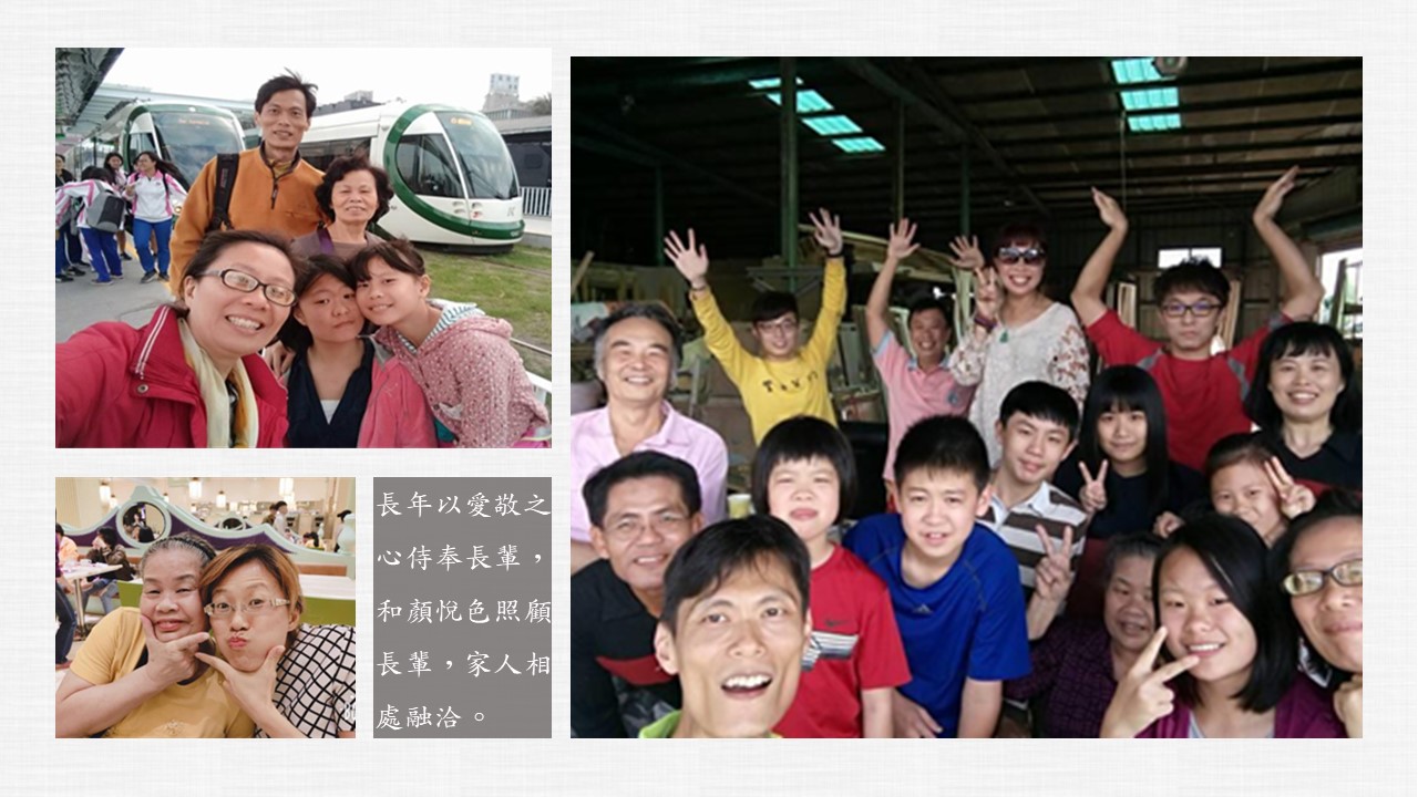 苡菱不僅照顧家人,也長期奉獻在偏遠地區弱勢族群和年長者的公益慰問關懷,所謂「老吾老以及人之老」。