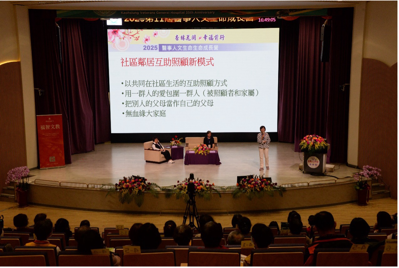 台灣人口老年化,醫療環境丕變,醫護人員身心壓力甚大。福智文教基金會與高雄榮總淨心人文社、高雄榮總口腔醫學部、屏東縣民眾醫院居家式長期照顧機構,聯合主辦2025年第11屆「醫事人文生命成長營」,於12月6日~7日在高雄榮總醫院舉行,希望學員能在專業的工作中找到內心的平靜,兩天共吸引約400人次學員參加。 高雄榮總一直支持醫事營造福醫事人員心靈成長的公益活動,這次提供剛整修好、優質的學習場地供營隊使用。課程首先由戲劇「我就這樣過了一生」破題,呈現醫護人員面臨高壓工作環境,以及家庭年邁父母的照顧問題。反思在忙碌人生中,個人所追求的是什麼?許多學員看了這齣戲,覺得主辦單位真的懂得他們的辛苦。