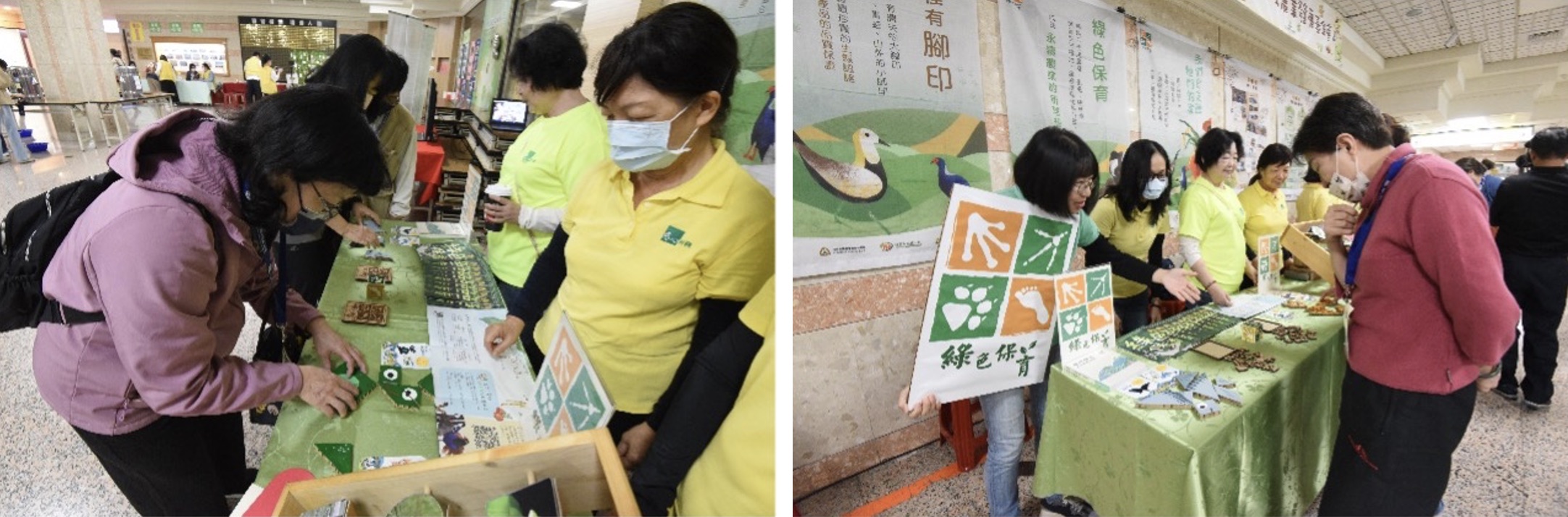 講堂外慈心田裡有腳印綠色保育推廣,吸引學員關注。
